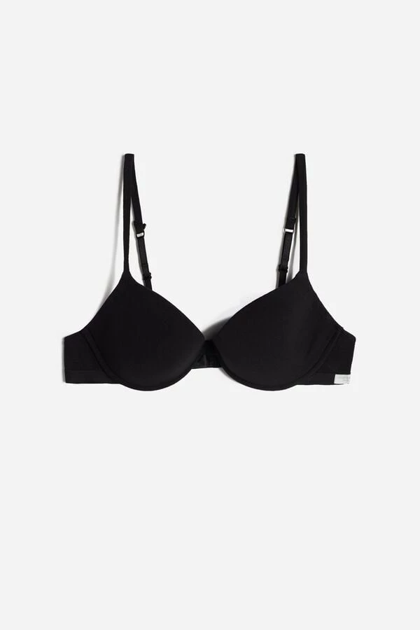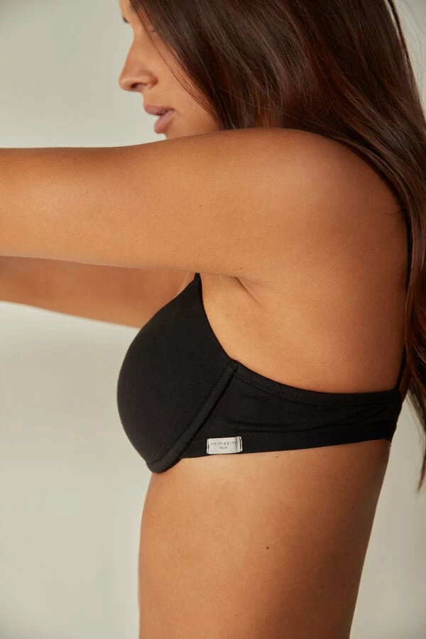 Bellissima push-up bra with underwire and lightly padded cups with interior cotton lining. The cups embrace the bust on the sides and shape the dรฉcolletรฉ with a light push-up effect. Made in soft, light stretch cotton. The straps are lined with cotton and are adjustable in back.