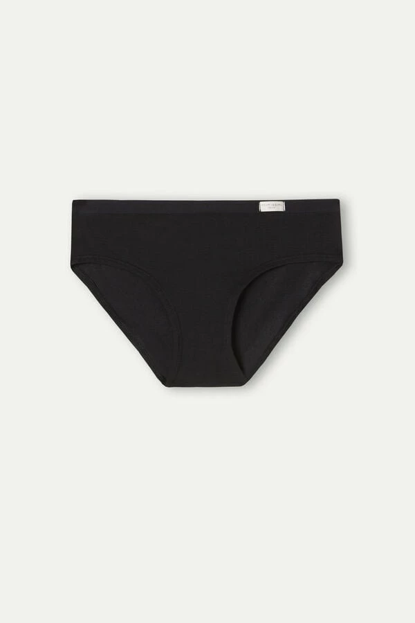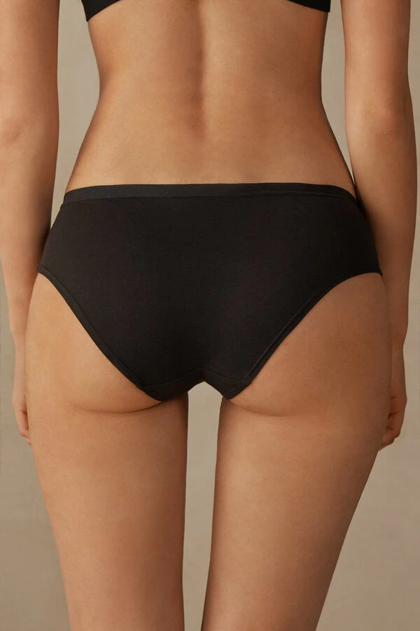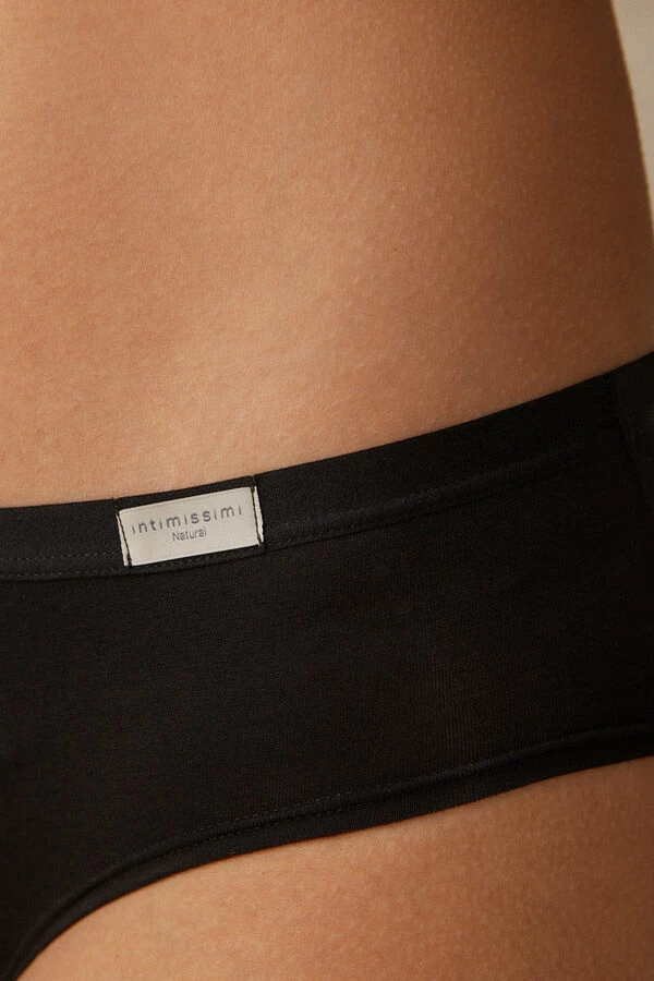 Mid rise panties in soft, lightly elasticized cotton defined by their cozy fit and back coverage. Waist trimmed with a soft and light elastic band. Inner gusset in 100% cotton. Ideal for those looking for practical and comfortable panties.