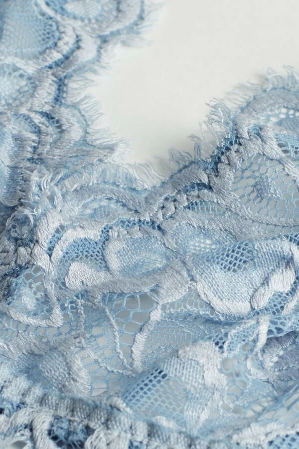 The lace in this garment contains Modal, an artificial fiber with natural origins, extracted from beech wood pulp.