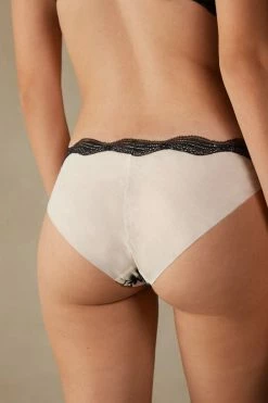 Panties in stretch cotton without seams at the legs, embellished with a contrast color lace insert. 100% cotton inner gusset.