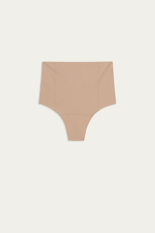 High-waisted French knickers in raw-cut microfibre featuring a double layer at the front for a comfortable sculpting effect. The lack of seams makes them the ideal choice for anyone wishing to keep their underwear invisible under their clothing. Pure cotton inner gusset.