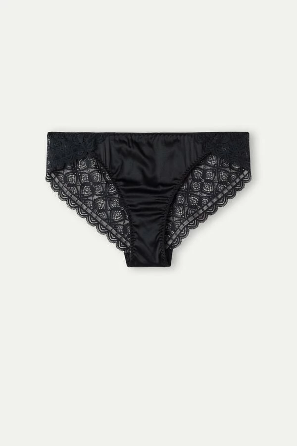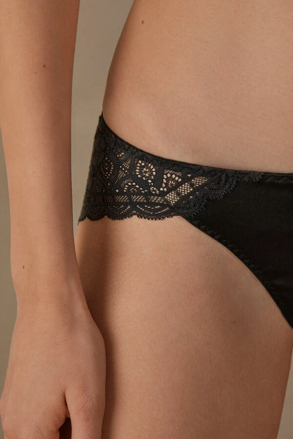 Briefs with silk front and lace back. Pure cotton inner gusset.